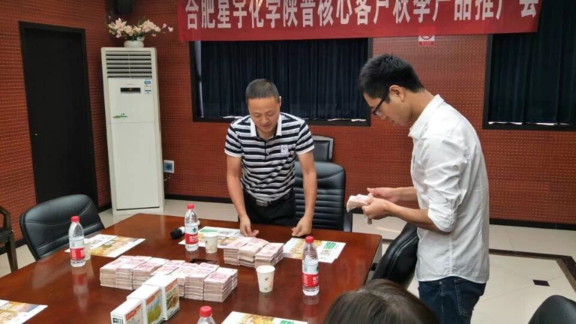 肥星宇化学有限责任公司总经理何普泉向参会客户介绍公司现状及未来发展方向。