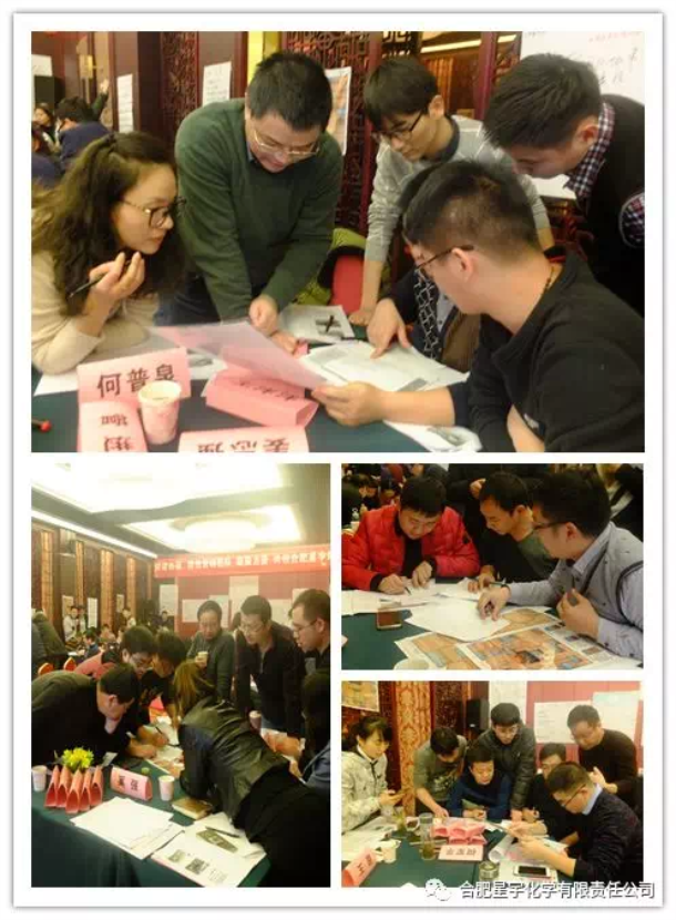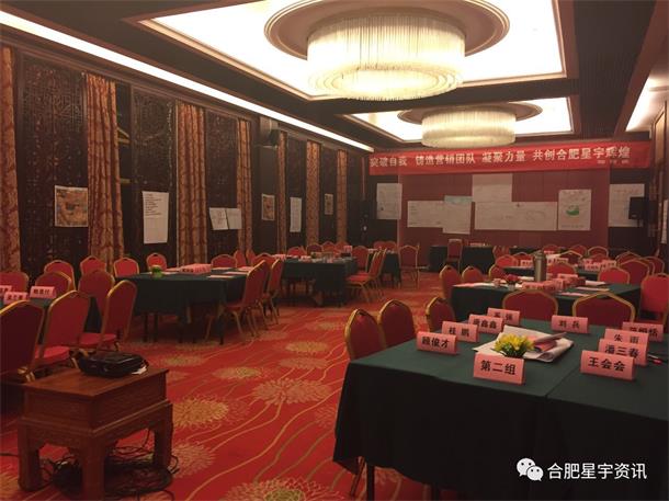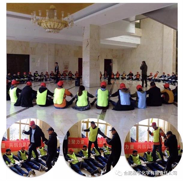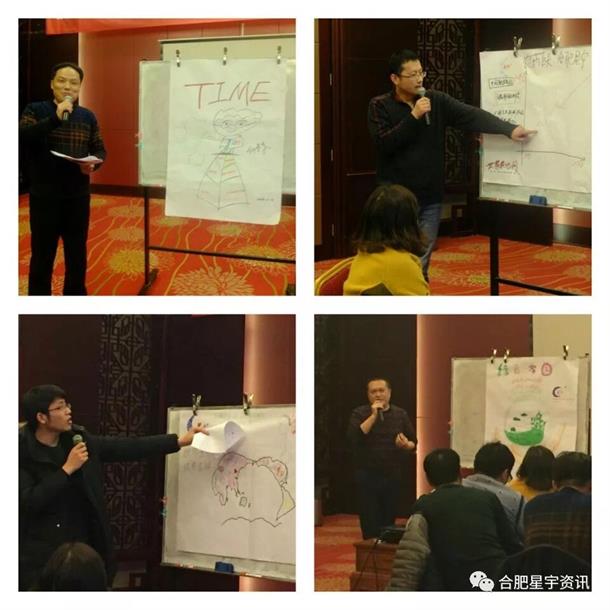 热身结束拓展正式开始,教练随机进行分组,由大家现场从预设的队名中挑选了四个队名,成立了星宇猛犸队、薯飘香队、粒满田队、利发队;为了调动大家的积极性,采取4进3淘汰制,选队长、唱队歌、画队徽、摆造型。通过团队展示,游戏排名,淘汰最后一名,各组成员精彩亮相,集思广益,以本队独有的方式进行自我表现,可谓是“百花齐放,百鸟争鸣”,充分秀出合肥星宇风采。