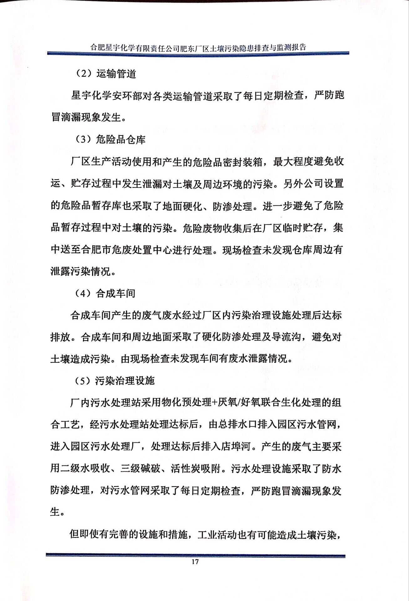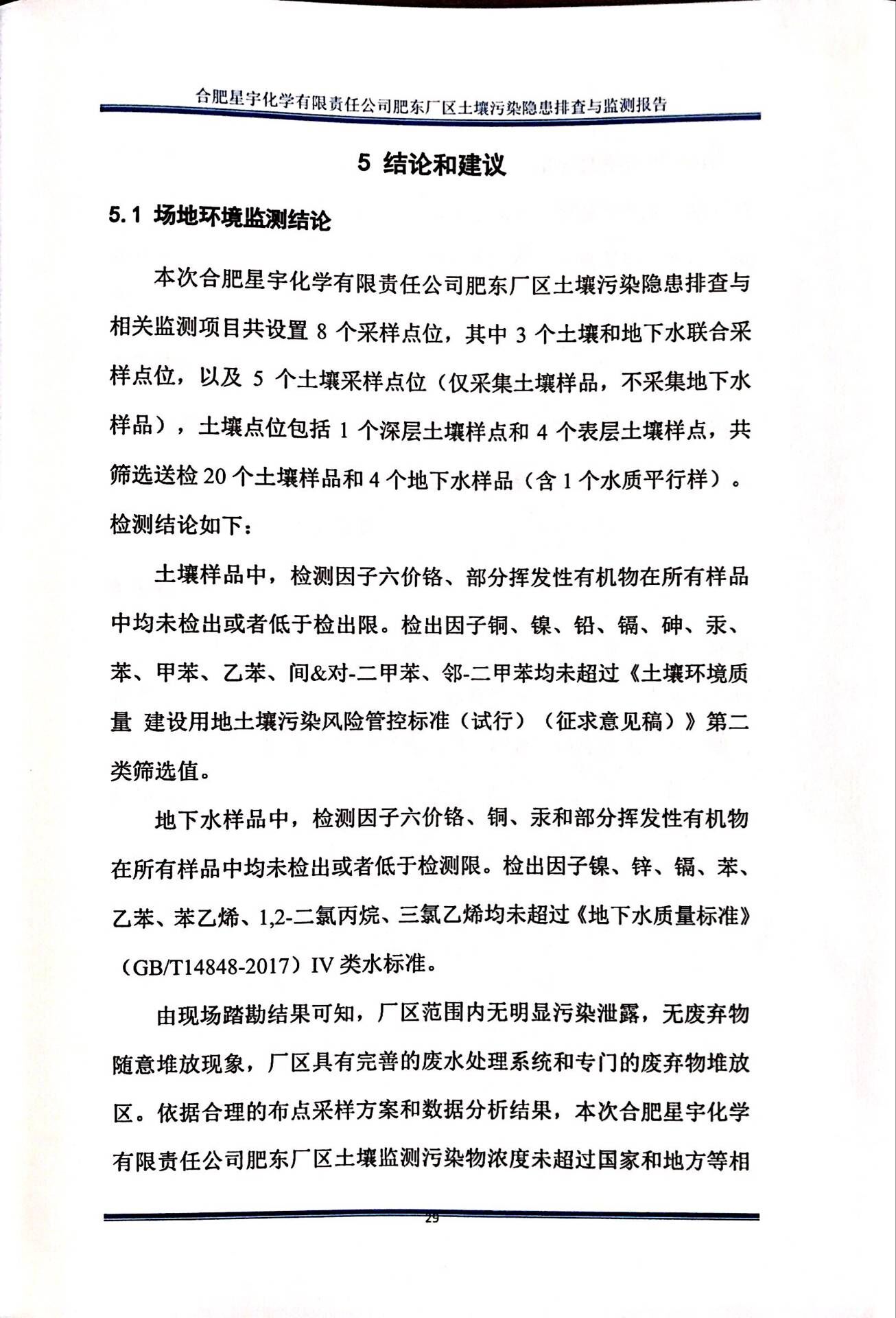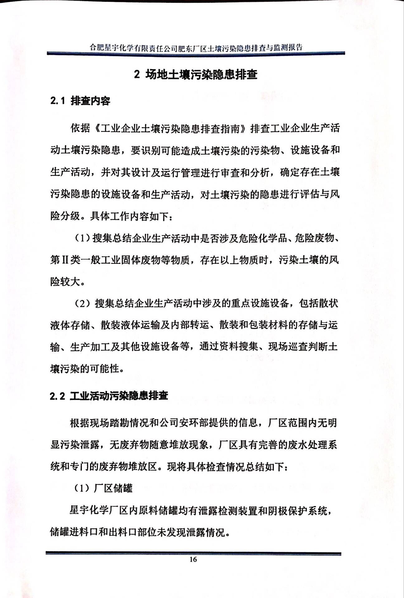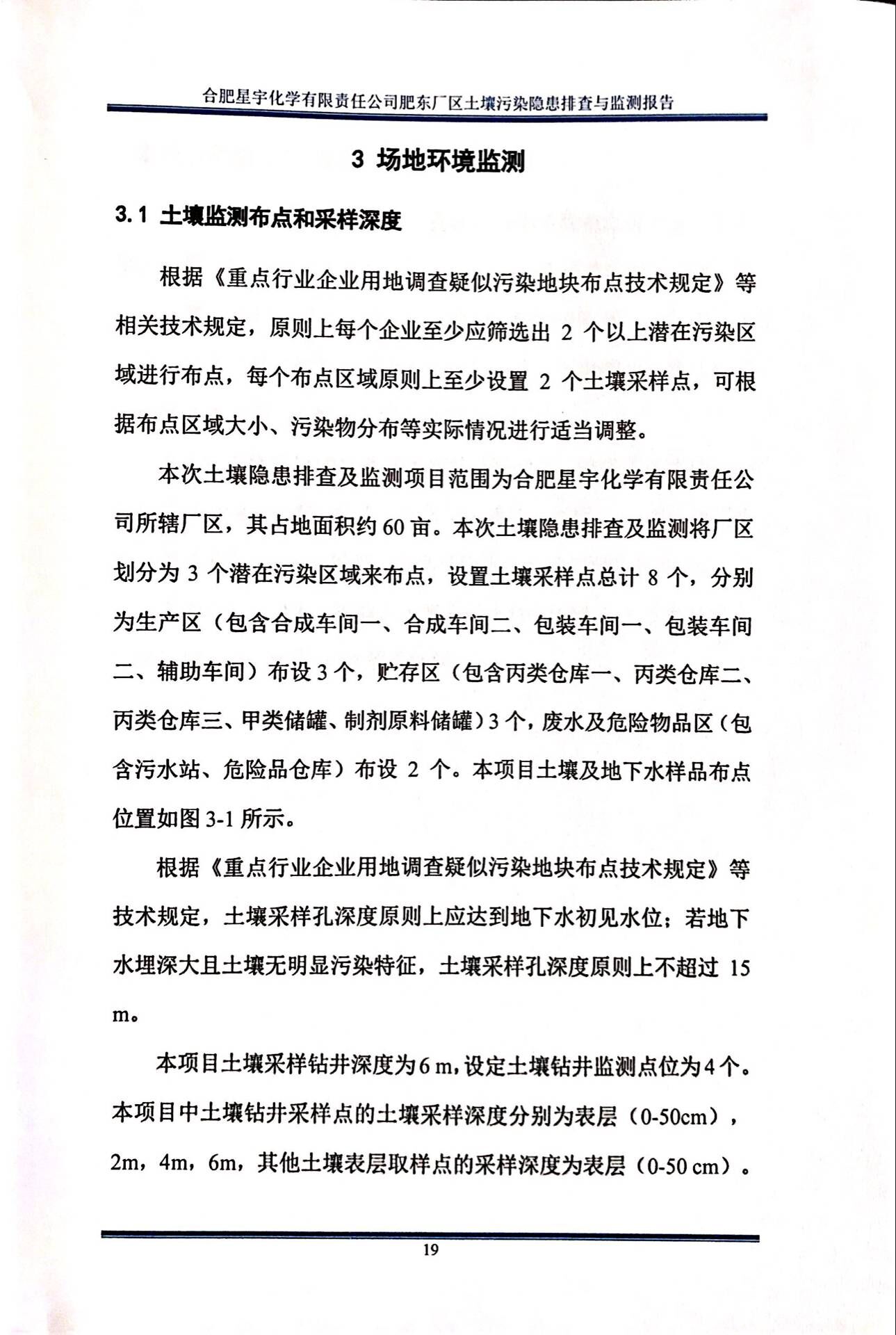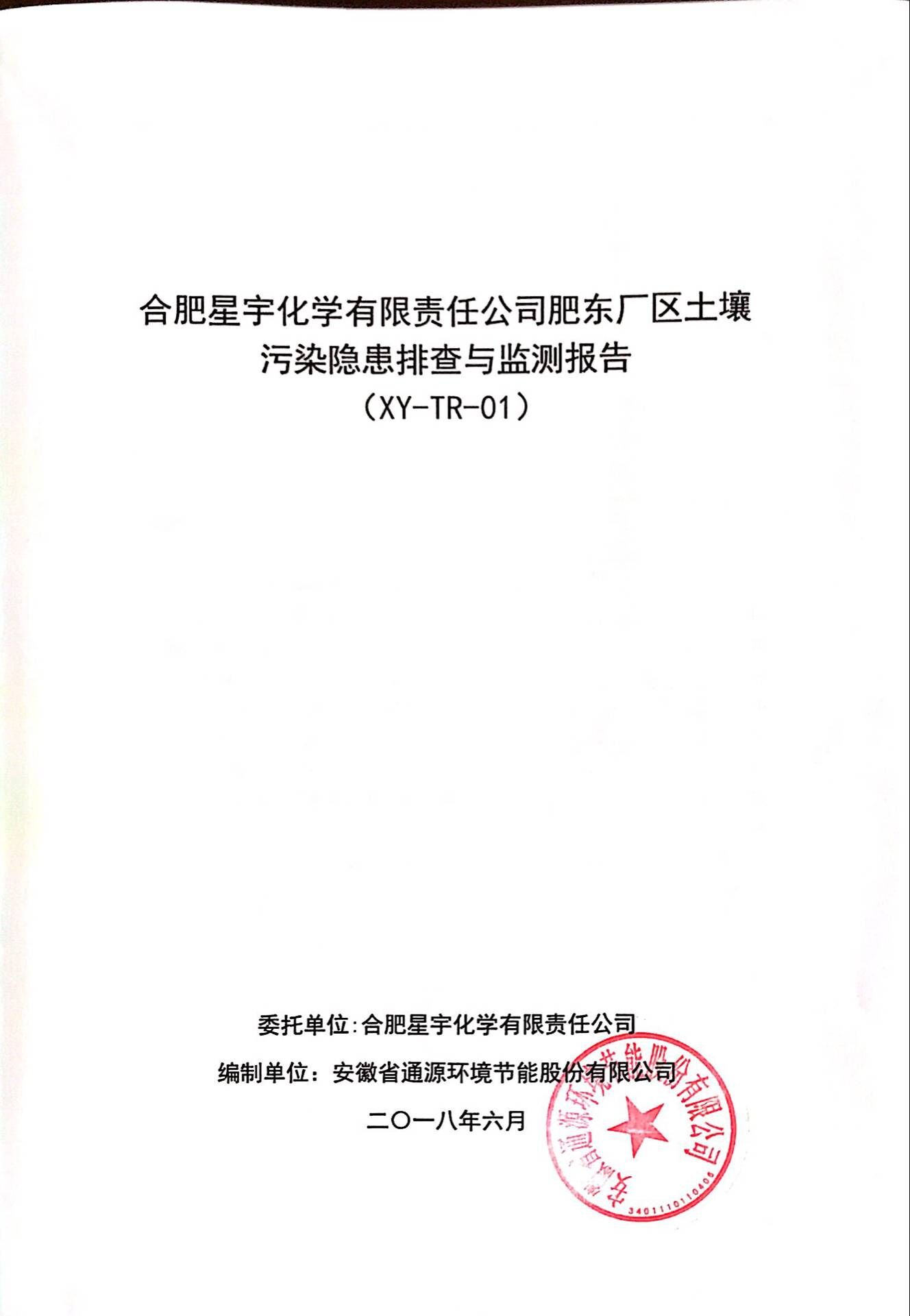 合肥星宇化学有限责任公司土壤污染隐患排查与监测报告