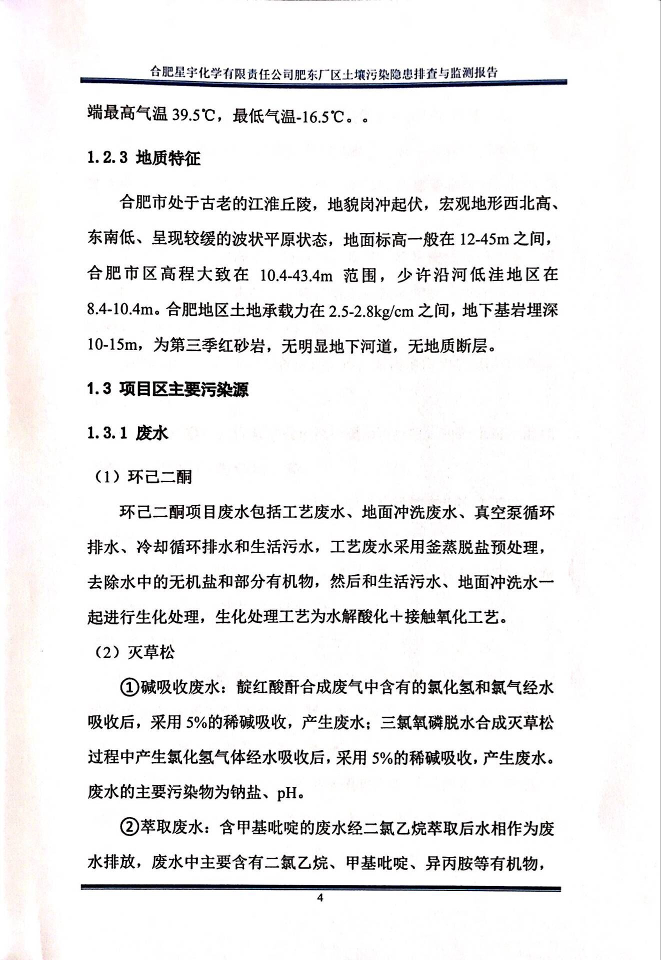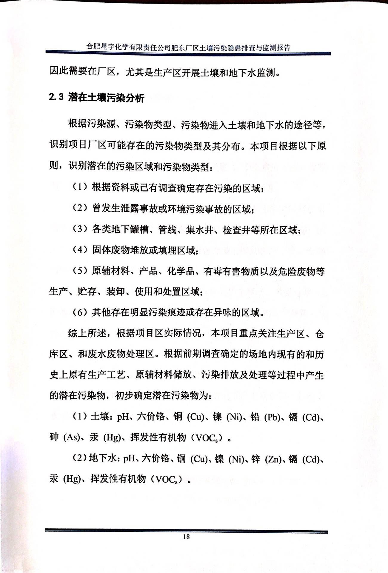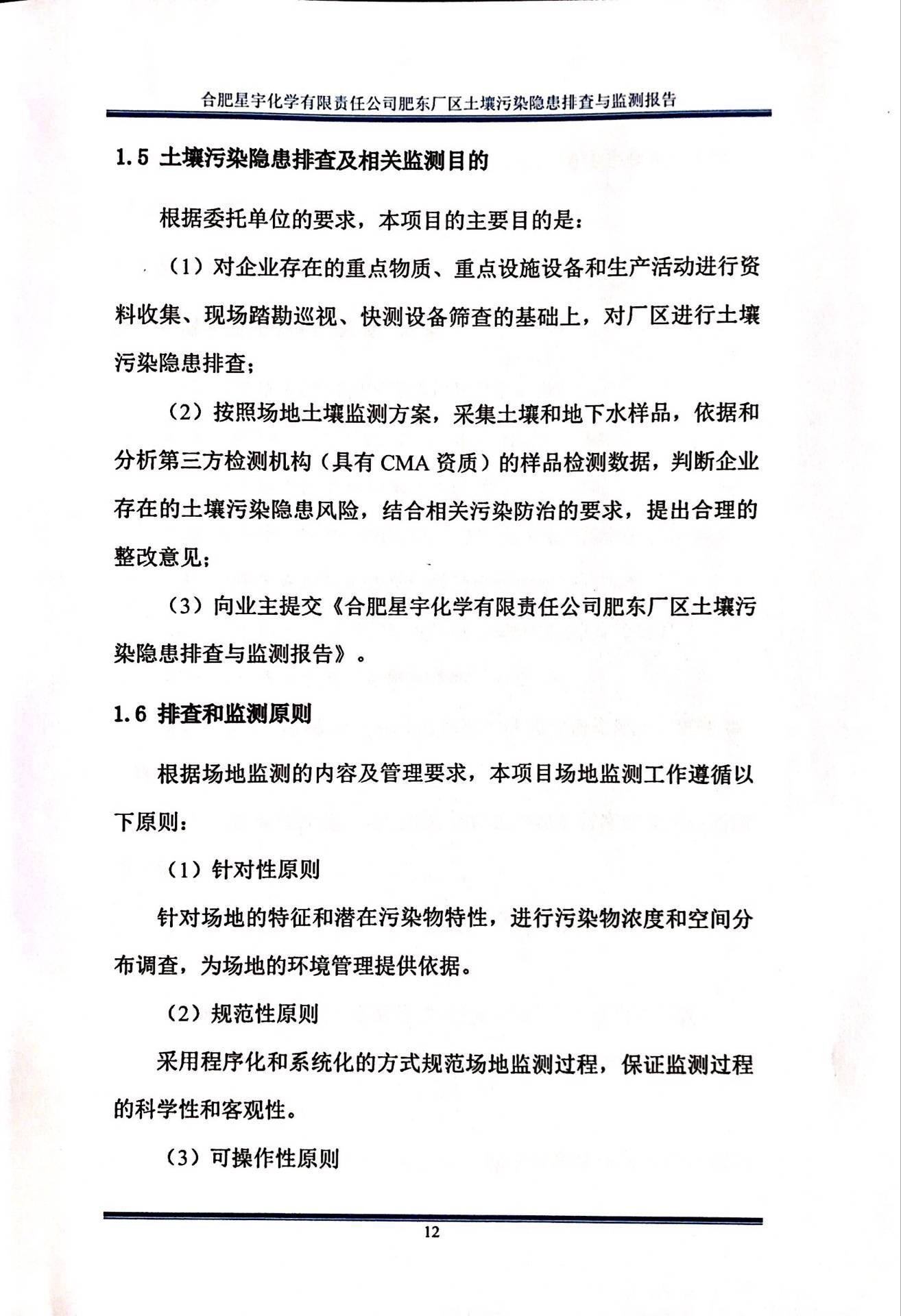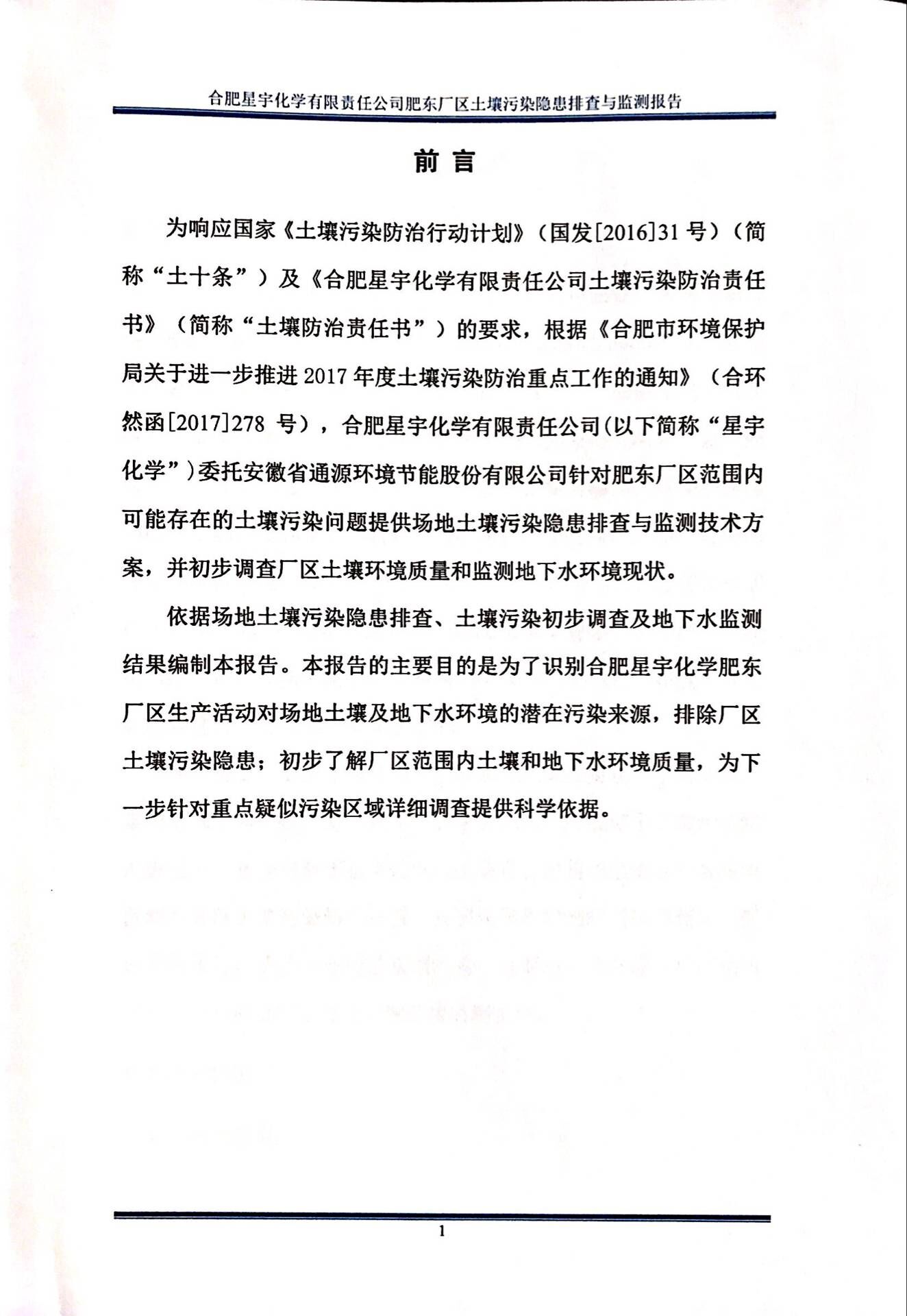 合肥星宇化学有限责任公司土壤污染隐患排查与监测报告