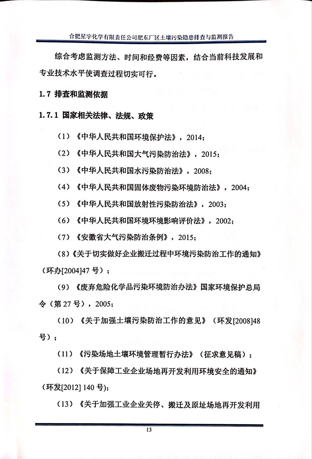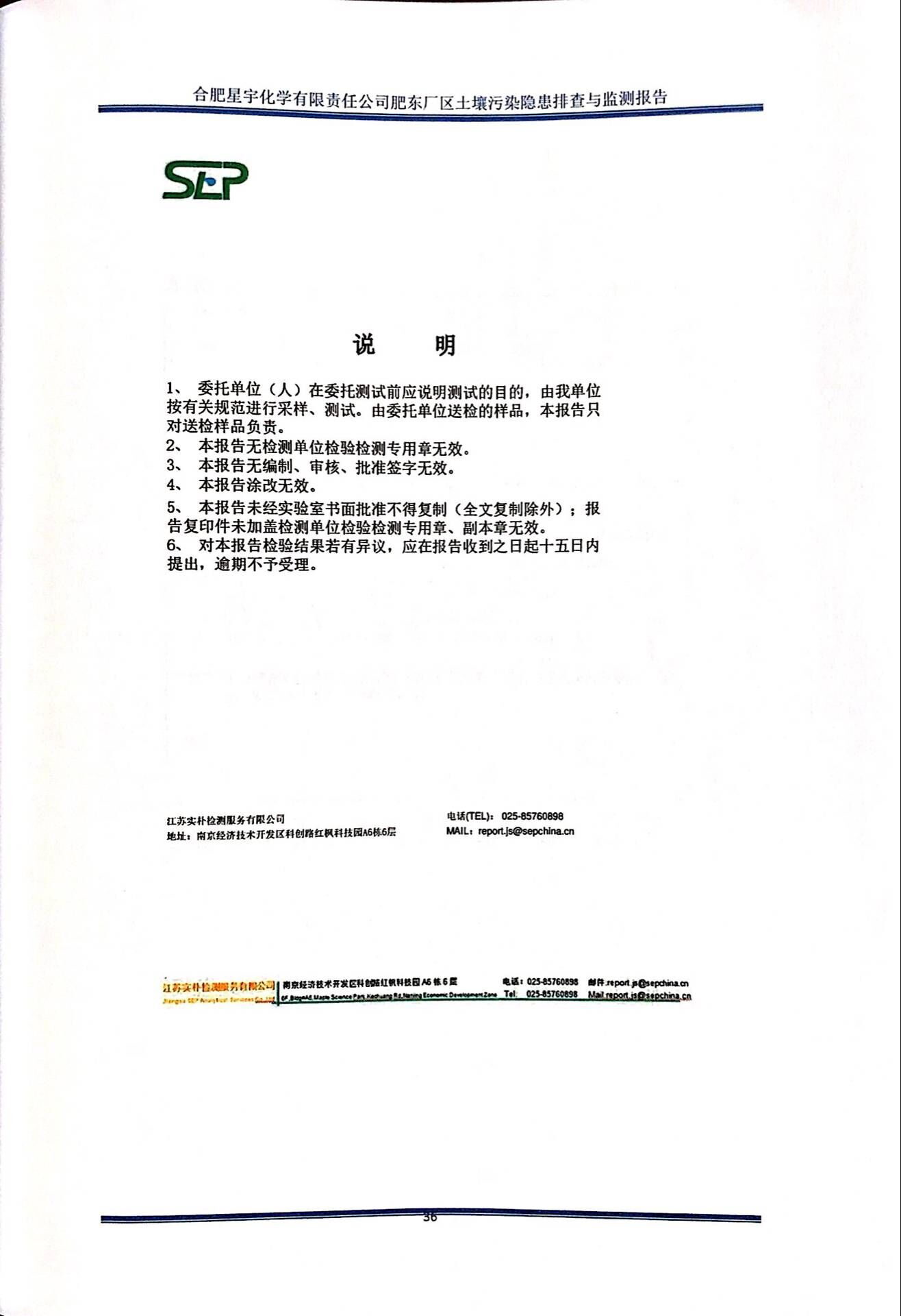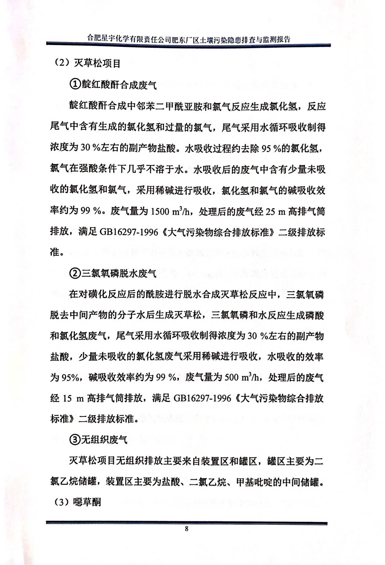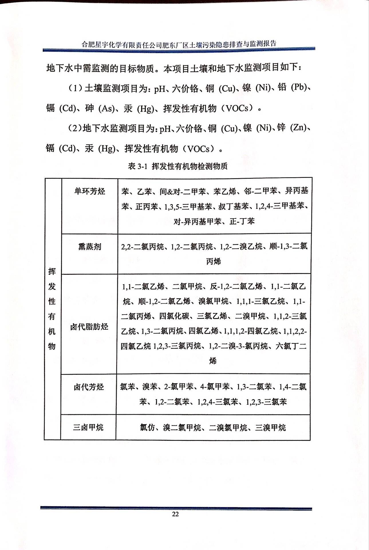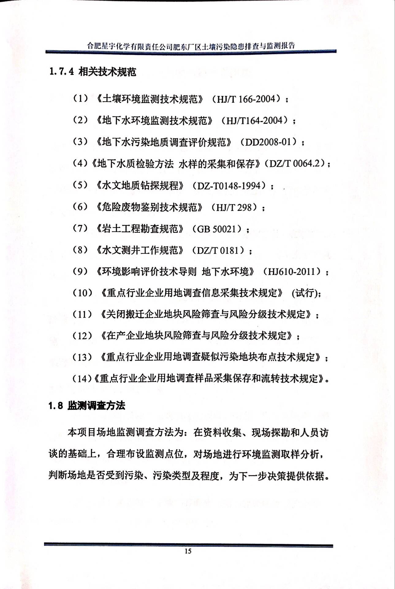 合肥星宇化学有限责任公司土壤污染隐患排查与监测报告