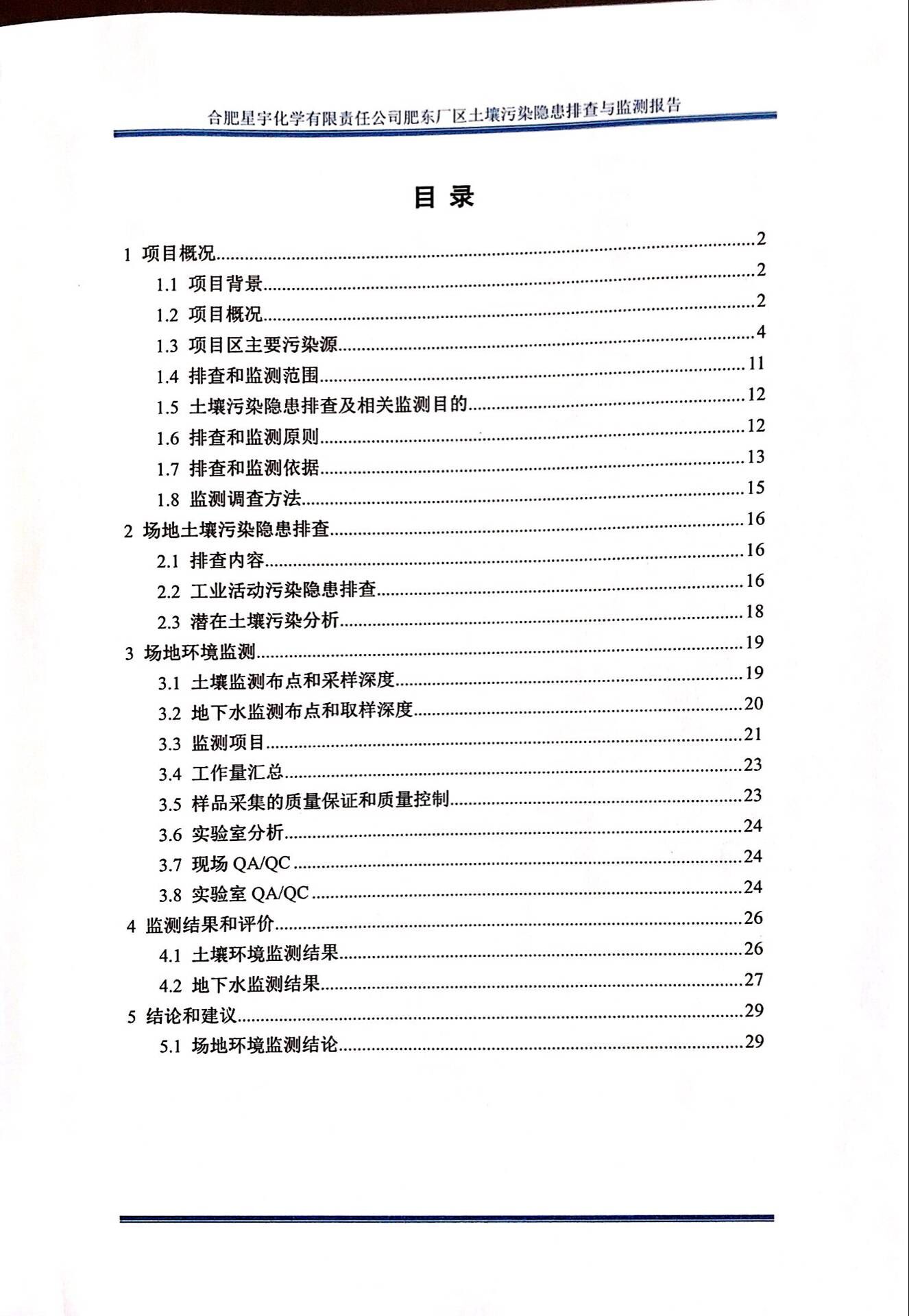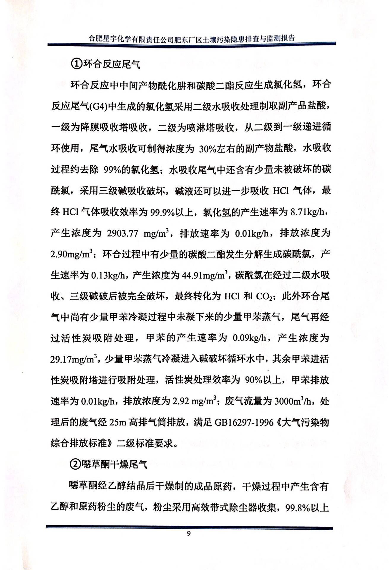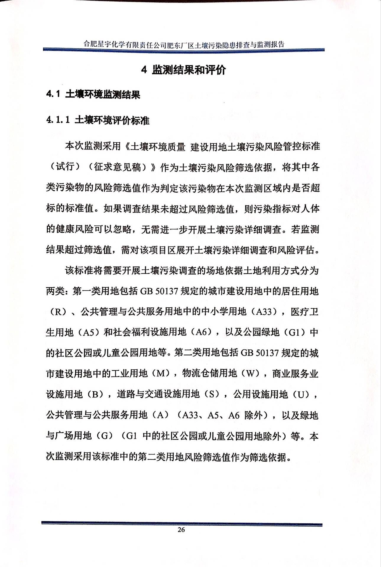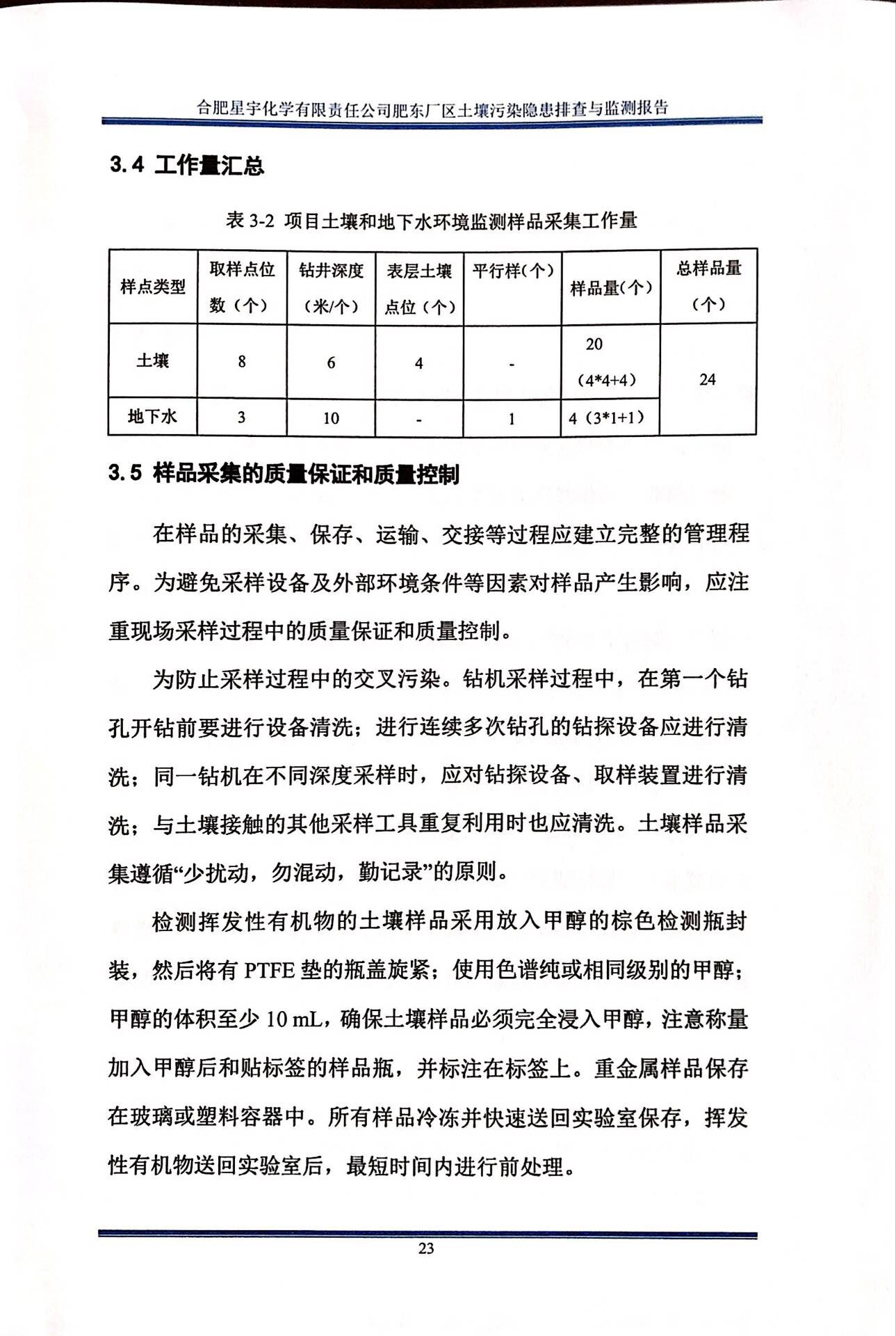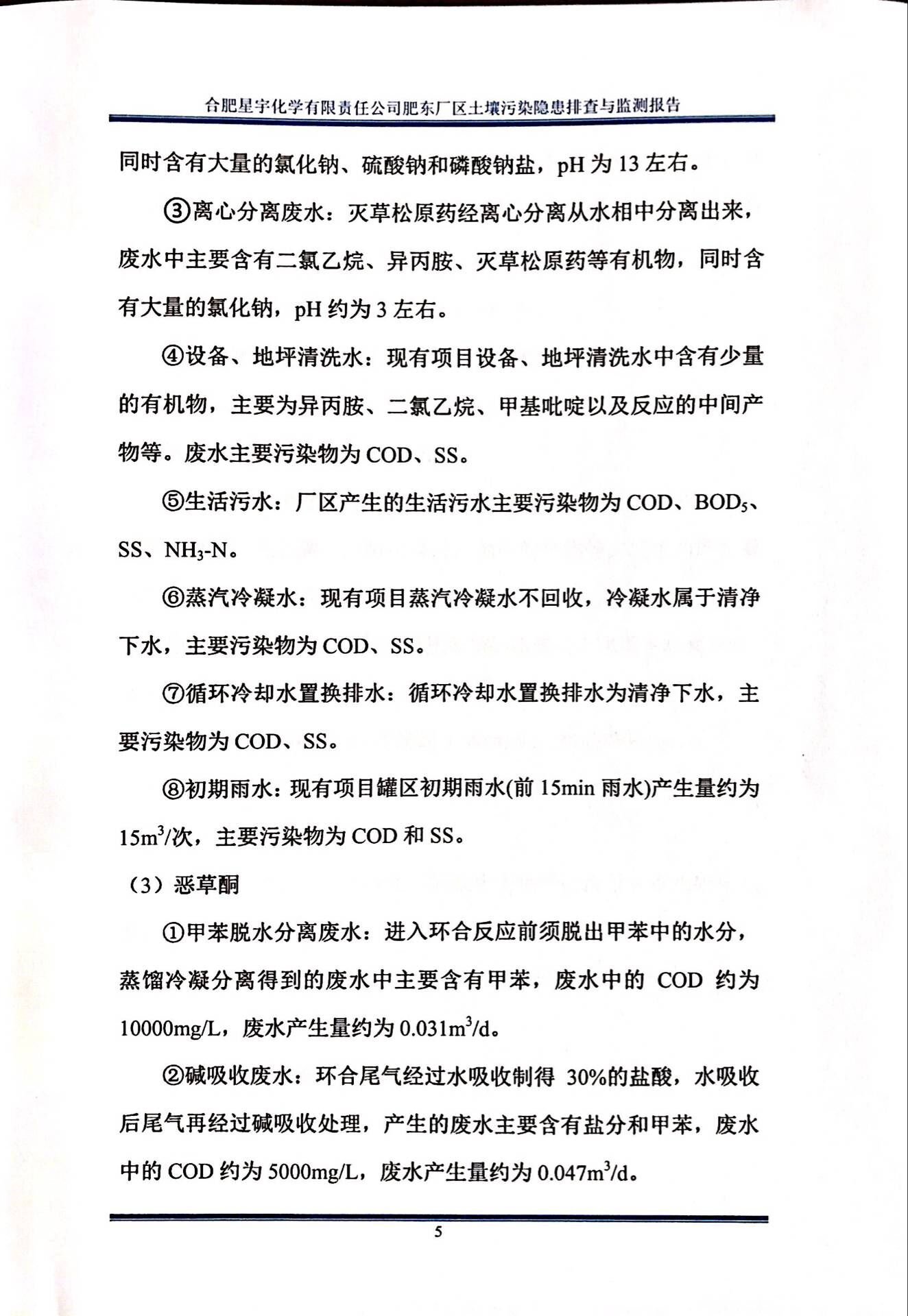 合肥星宇化学有限责任公司土壤污染隐患排查与监测报告