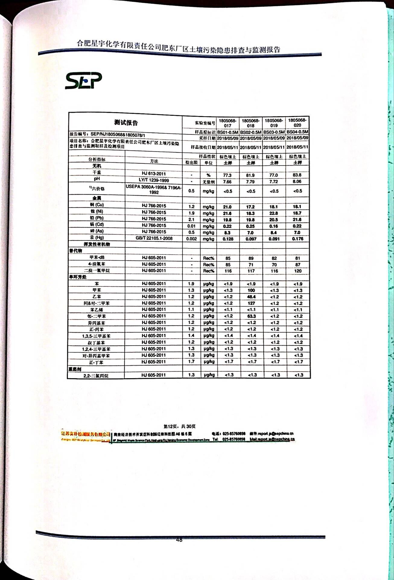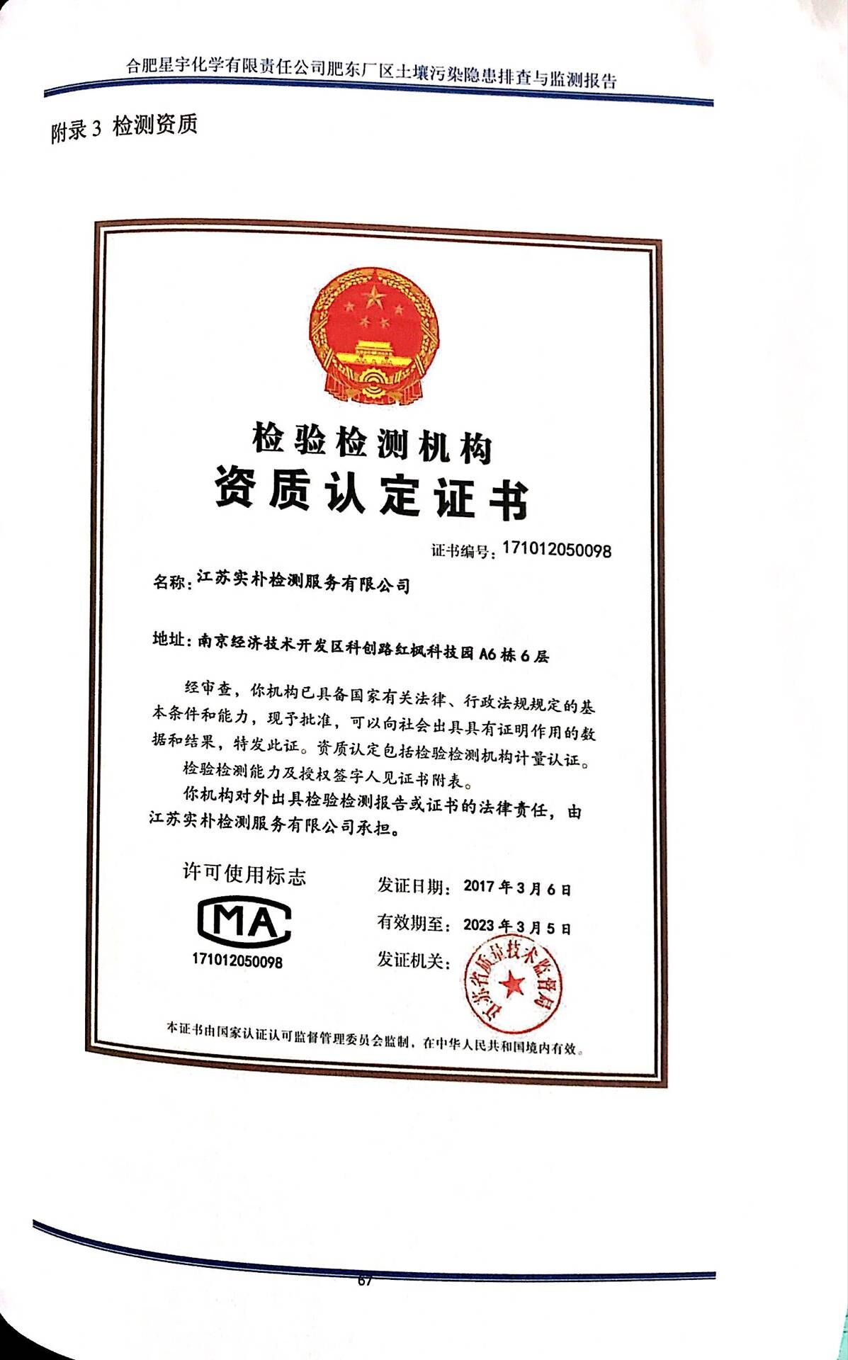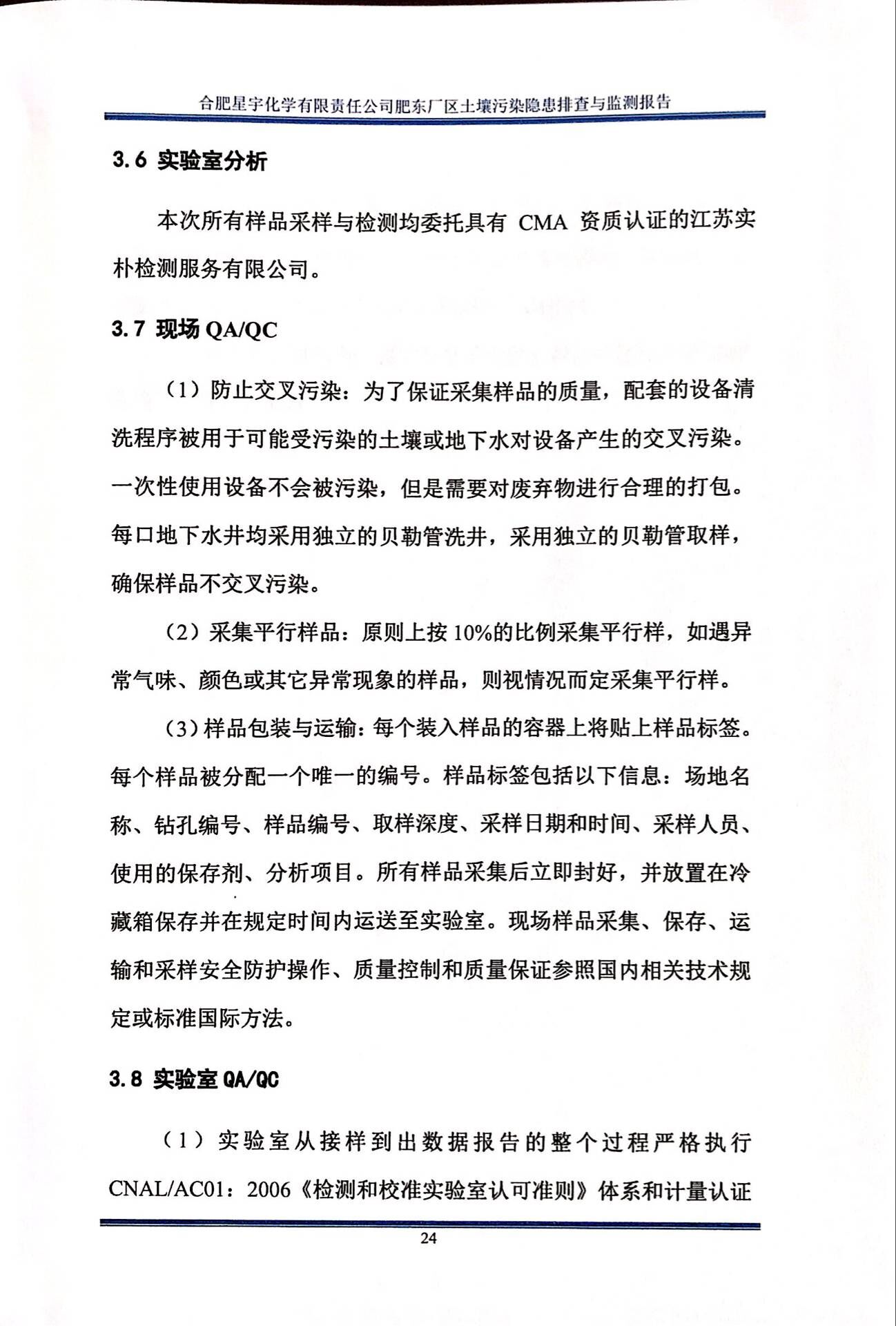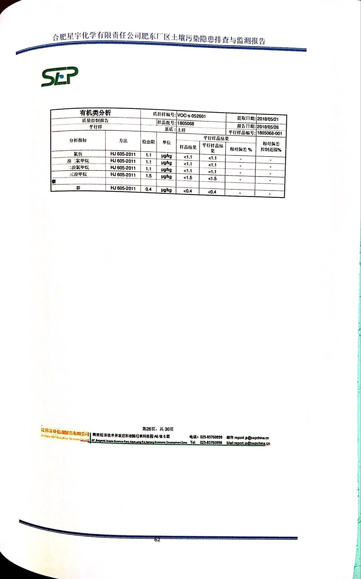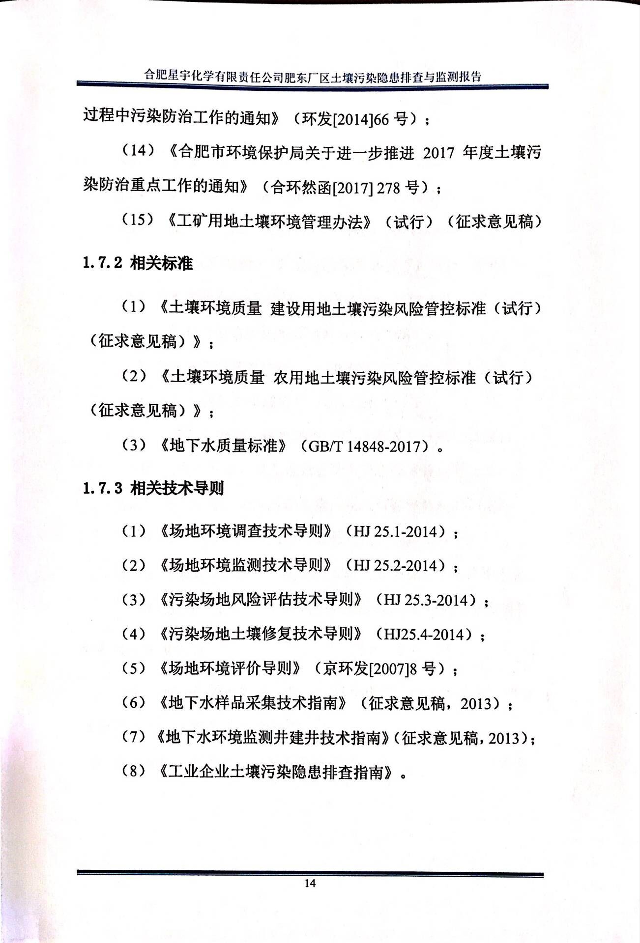 合肥星宇化学有限责任公司土壤污染隐患排查与监测报告