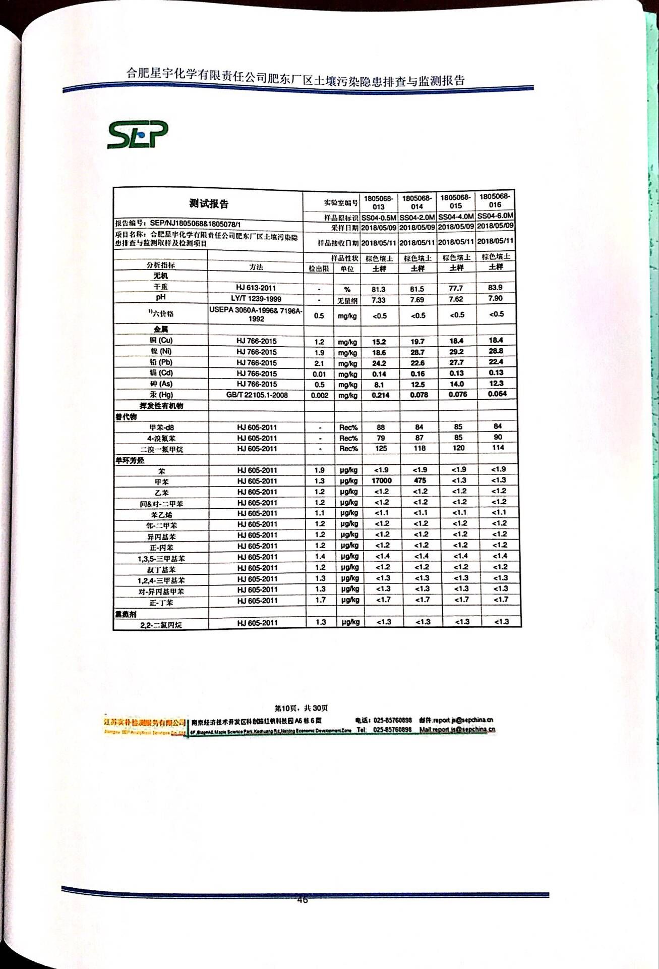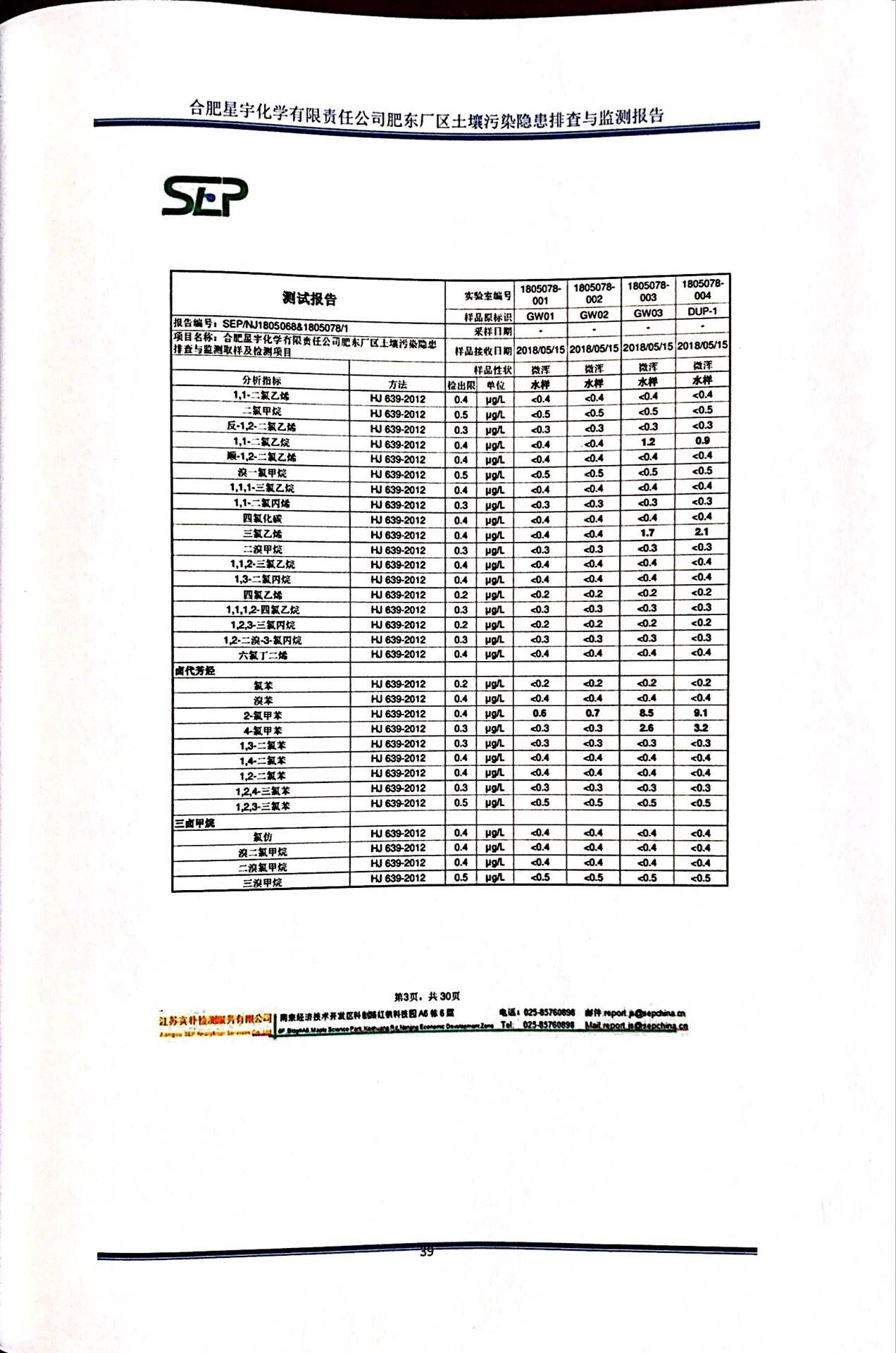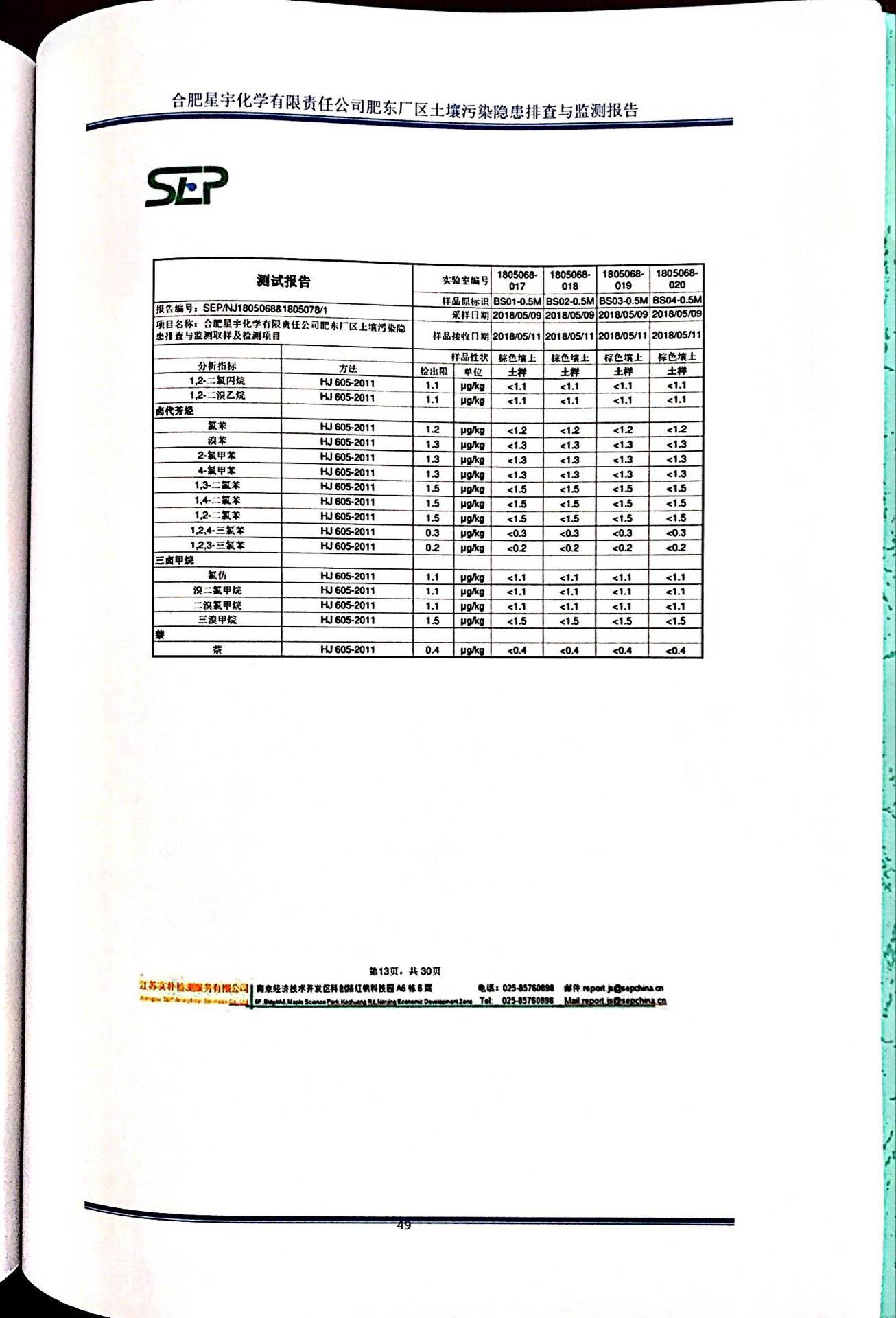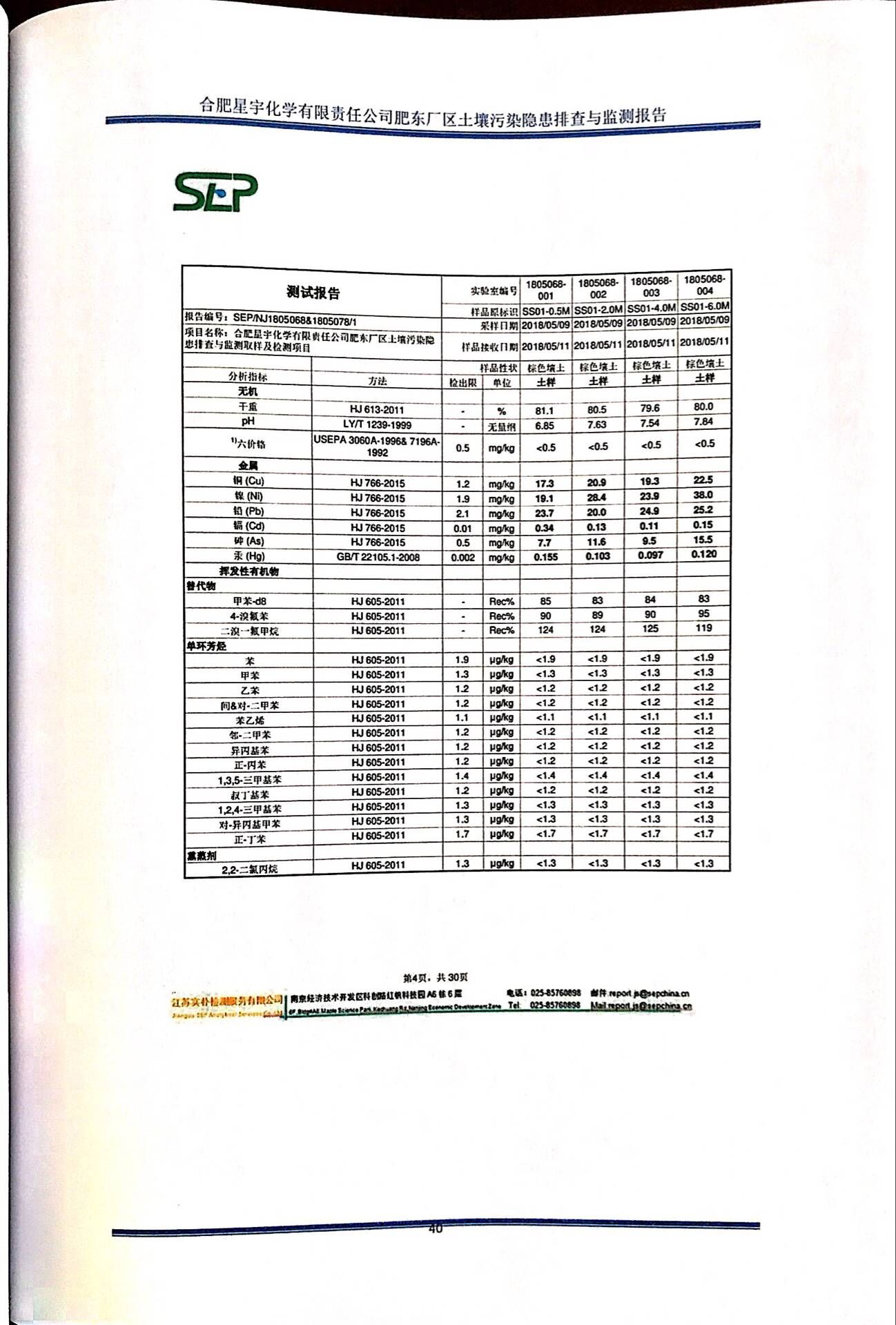 合肥星宇化学有限责任公司土壤污染隐患排查与监测报告