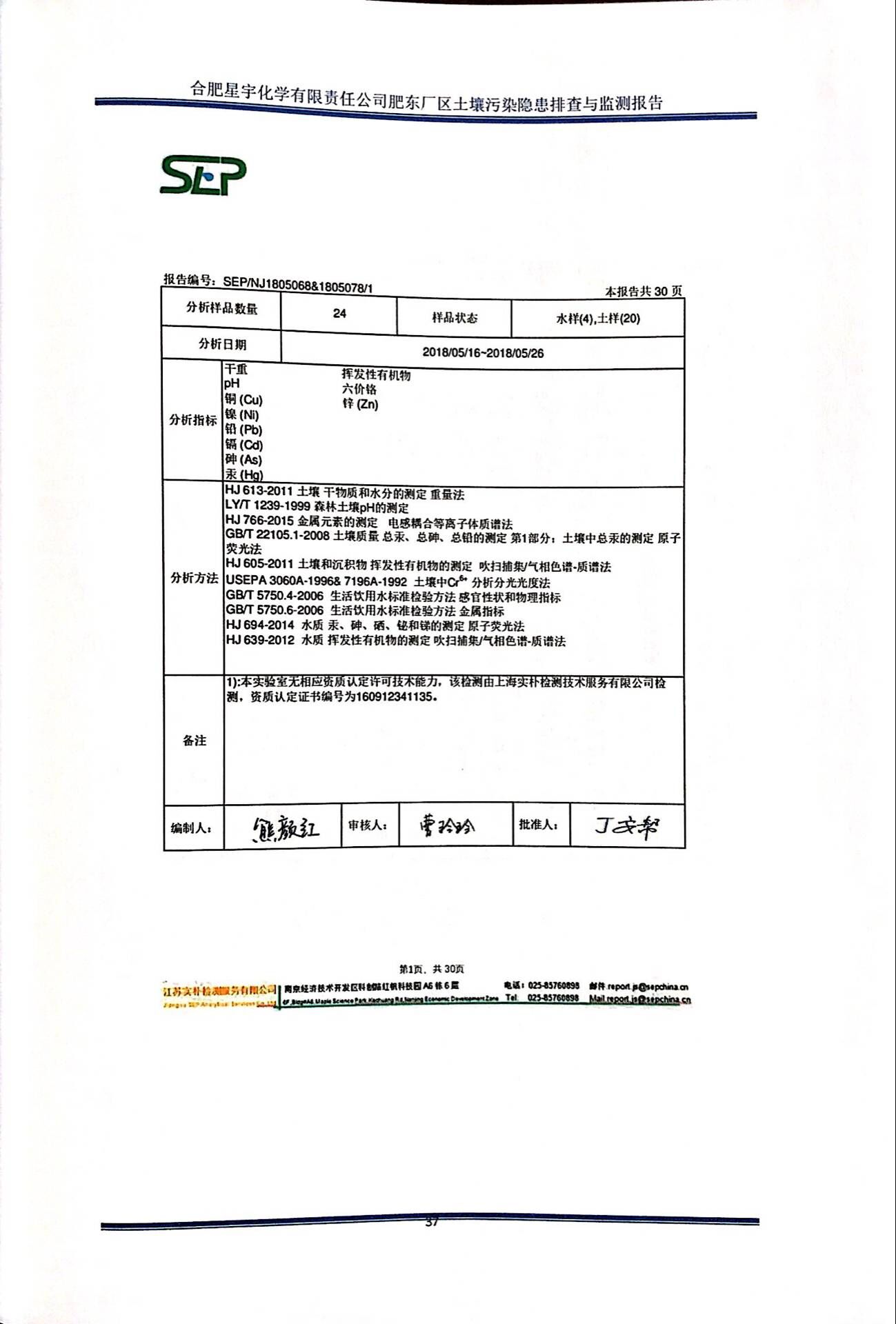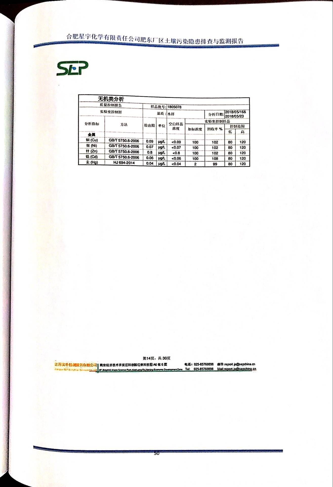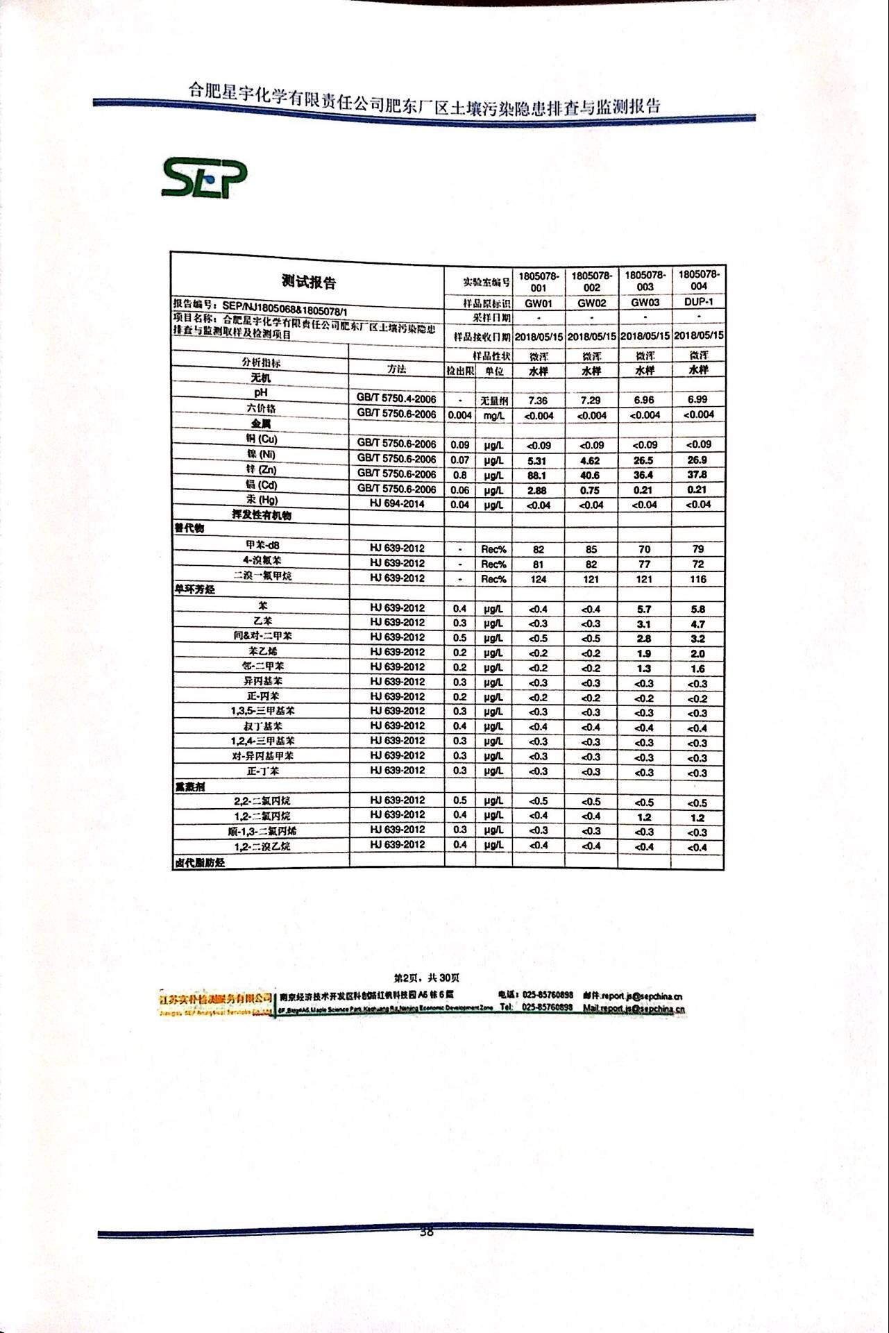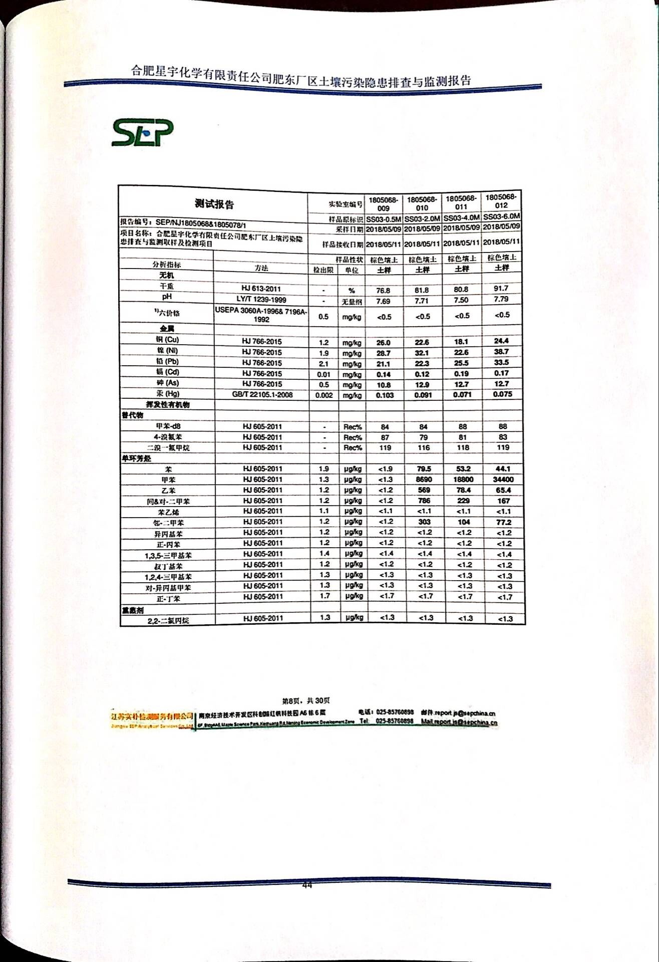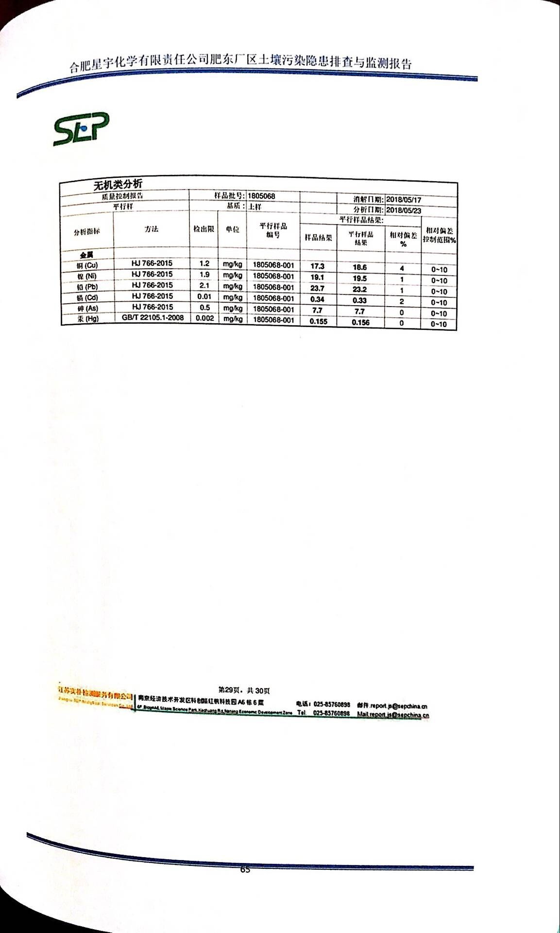 合肥星宇化学有限责任公司土壤污染隐患排查与监测报告