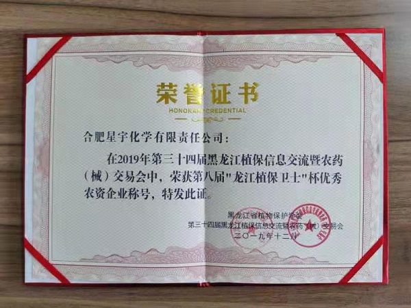 恭喜合肥星宇荣获“龙江植保卫士”杯优秀农资企业