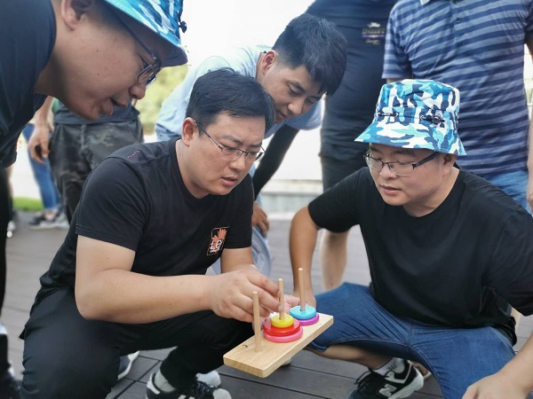 考验智商的游戏:汉诺塔。考验团队的目标意识,要求队员明确自己的责任,完成团队的目标。