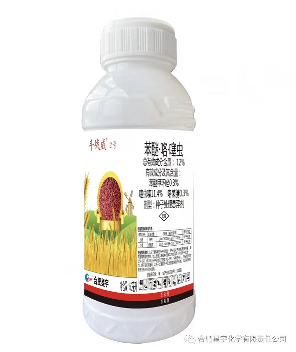星宇化学2021年新上市的小麦田拌种剂,有效成分:12%苯醚·咯·噻虫种子处理悬浮剂;采用新型制备工艺,选择高质量成膜剂和缓释剂,产品成膜速度快(半小时内成膜)、成膜性好,质量稳定,包衣层不碎、不脱落,透水、透气,缓释效果好(微囊本身具有缓释的作用),能有效防治小麦病虫危害,使苗齐、苗壮,保证小麦出苗率。