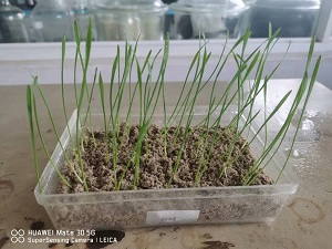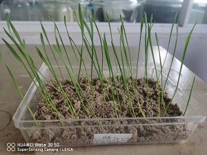 纸培条件斗战威2号和空白对照处理小麦长势情况。