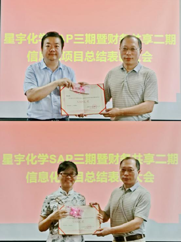 8月11日合肥星宇化学有限责任公司召开SAP和财务共享信息化总结表彰大会。