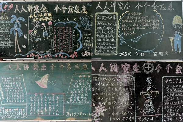 宣传造氛围。开展安全主题板报评比活动,各部门、车间的黑板报紧紧围绕安全月主题,员工们精心设计内容、设计版面,主题鲜明、形式多样的版报传递出各岗位员工的安全理念,进一步宣传了安全行为规范;开展安全生产安全知识“大考试”。根据安全生产月活动宣传培训内容以及公司发布的《安全生产月学习资料》、各车间应急处置卡等组织学习考试,以测促学、以学促练,营造浓厚的学习氛围。