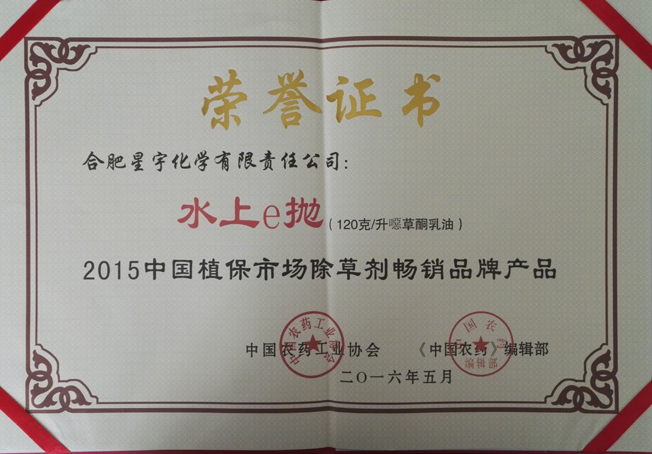热烈祝贺“水上e抛”荣获2015中国植保市场除草剂畅销品牌产品!