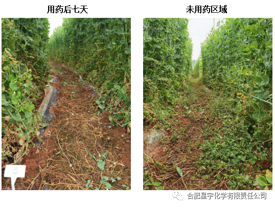 豌豆、蚕豆用药注意事项: 1、若遇低洼易涝、田间积水不宜施药; 2、豌豆、蚕豆苗弱不宜施药; 3、药后有低温等情况应谨慎施药; 4、不推荐使用助剂,以免产生药害; 5、按照推荐剂量使用,严格注意灭草松用量。 药效展示 地点:云南石林 时间:2022.11