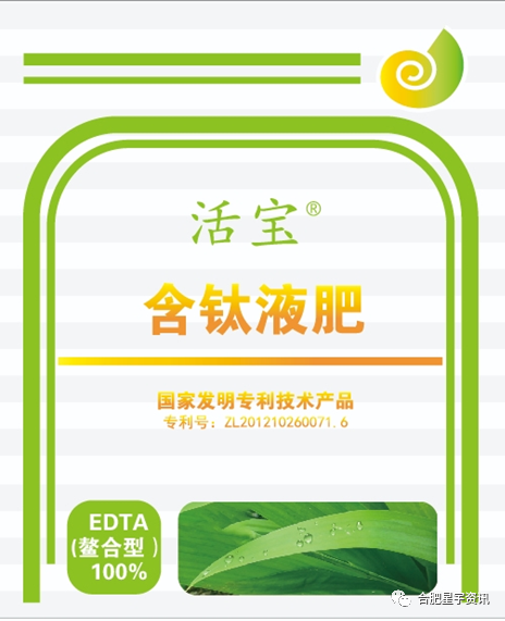 “钛”可以明显增加叶绿素含量,提高光合作用效率,从而增加干物质积累;可以明显提高作物体内多种酶的活性,特别是固氮酶;能促进植物根系生长,提高植物吸收利用土壤养分的能力。含钛元素的水溶肥料,适用性广,使用方便,增产幅度大,不仅能够促进农作物的生长发育,还可以提高作物产量。但钛元素不能直接为植物所利用,只有变成可溶性钛时,才能被吸收利用。 活宝®目前使用的是螯合钛,螯合钛的水稳定性好,无气味,不污染环境。