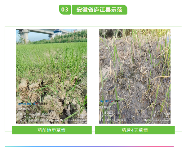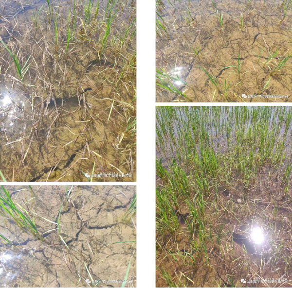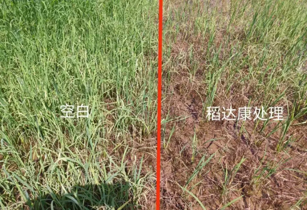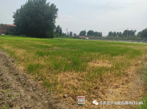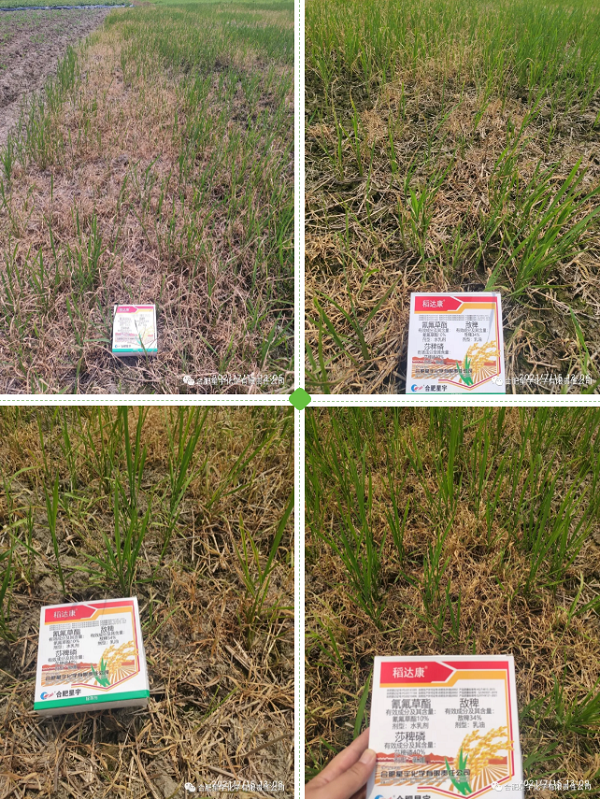 安徽长丰县种植旱直播稻已有多年,这里马唐和自生麦苗对ACCase抑制剂已产生抗性,打下去杂草叶片有受到损伤,但是心叶生长未受到影响。人工防除成本又高且小草拔不尽,下一场雨又会长起来盖住稻苗,此次用稻达康补火。